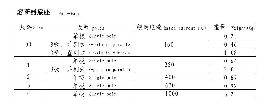 本系列熔斷器能與國外符合IEC、DIN標準的同類熔斷器完全互換。