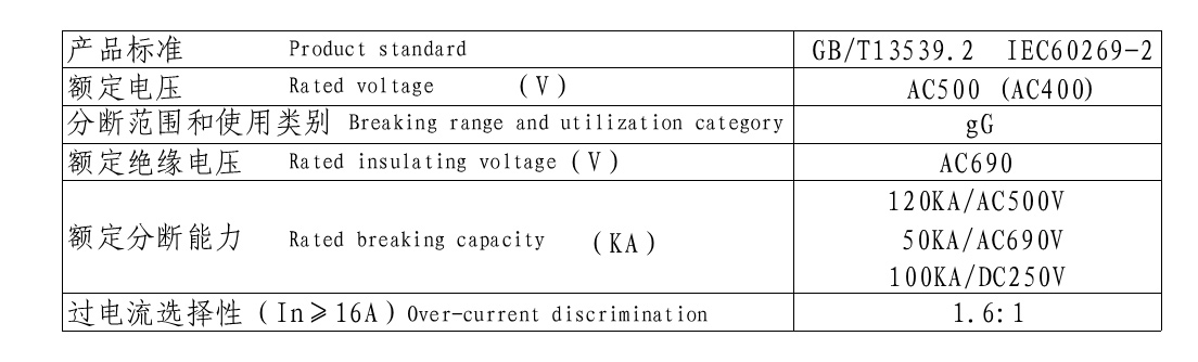 符合GB13539.2、IEC60269-2-1標準中的規(guī)定。