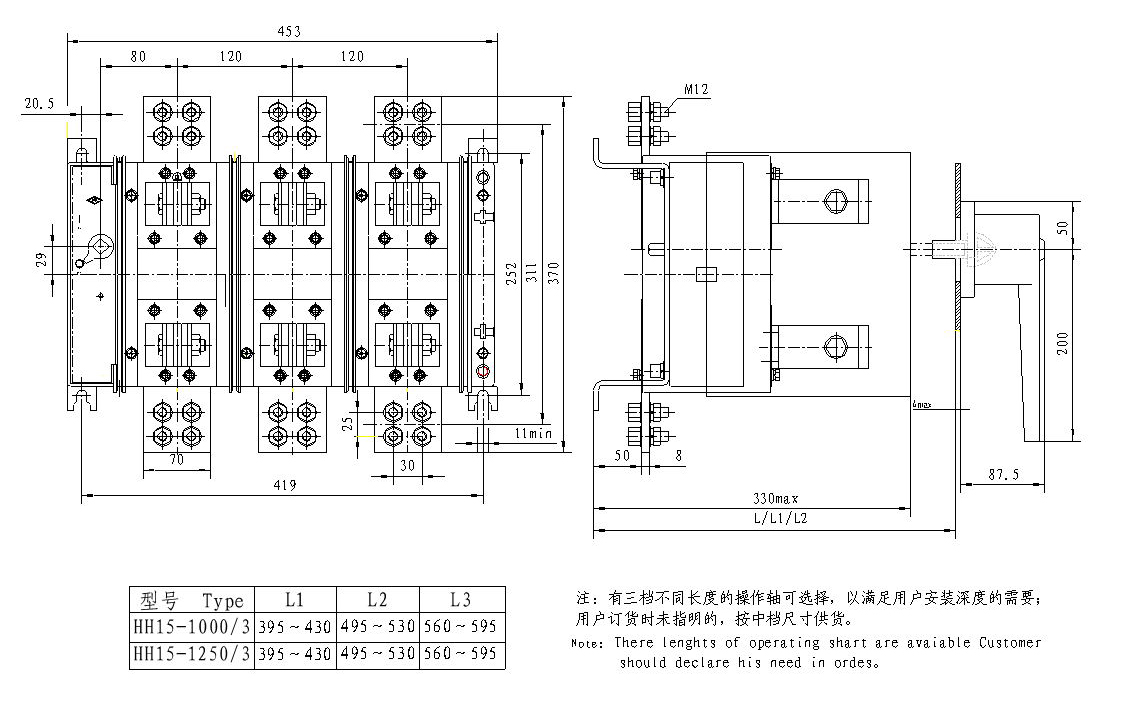HH15(QSA)系列隔離開關(guān)熔斷器組主要用于有高短路電流的配電 電路和電動機電路中,作為手動頻繁操作的開關(guān)、隔離開關(guān)和應急開 關(guān),并作電路保護之用。開關(guān)可直接開閉電動機等高電感負載,特別適 用于抽屜式開關(guān)柜成套裝置中使用。
