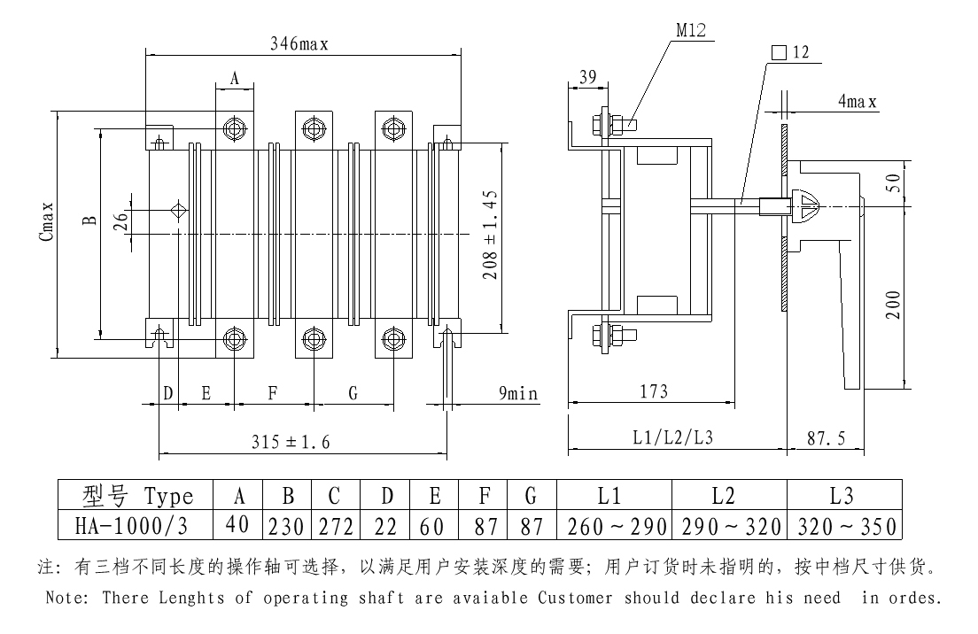 本系列隔離開關(guān)由刀型靜觸頭、滾動(dòng)動(dòng)觸頭及滅弧裝置組成的接觸系統(tǒng) 均組裝在由耐弧工程塑料制成的封閉底座內(nèi),能達(dá)到零飛弧。操作機(jī)構(gòu)由具有 彈簧儲(chǔ)能的連桿傳動(dòng)機(jī)構(gòu)構(gòu)成,靠彈簧力完成開關(guān)的分、合,使開關(guān)動(dòng)作無關(guān) 人力操作。手柄由操作手柄和傳動(dòng)軸等構(gòu)成,屬旋轉(zhuǎn)操作方式。當(dāng)手柄旋轉(zhuǎn)操 作時(shí),使操作機(jī)構(gòu)彈簧儲(chǔ)能,靠?jī)?chǔ)能的彈簧力釋放帶動(dòng)動(dòng)觸頭與靜觸頭形成 合、分兩種狀態(tài),從而達(dá)到開關(guān)分、合主電路的目的。